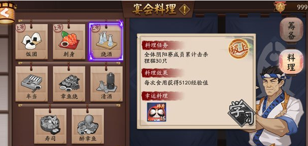 1、会长/副会长选择宴会料理(消耗勋章,获得经验,可以学习更高奖励的料理)