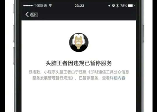 微信头脑王者小程序非常的有趣,可以和用户一起比拼智能,然而在1月30日晚开始,用户都无法进入小程序,官方给出玩头脑王者违规暂停服务,很多的玩家都想知道什么时候重新上线,下面为大家带来详情介绍。