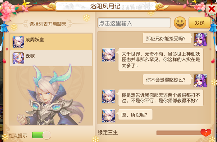 (2)根据玩家的互动程度,游戏中的虚拟角色将成为少侠们在梦幻世界里的亲密“好友”或“恋人”。