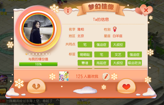 3. 互相喜欢的玩家,则弹出“结佳缘”界面,双方同意则可结“佳缘”关系(有夫妻关系的除外);