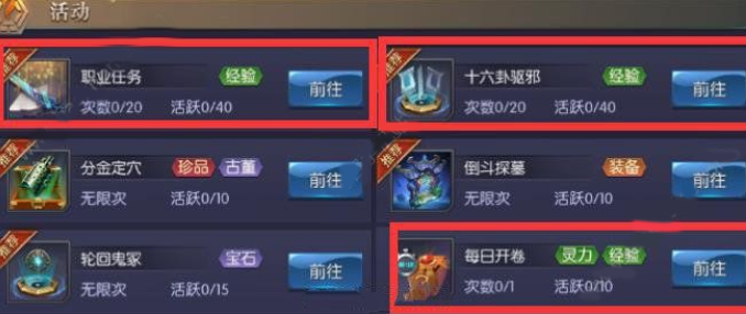 2、大概到24-25级后,出现首个等级卡点。这时候,这个时候“十六卦”“职业任务”“每日必答”是推荐重要首选!同时留意限时活动与要塞战场,都是经验非常多升级比较快捷有效的玩法!