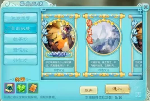 伴生境:此境比境,伴之存之。此为福利秘境,在限时内击败的对手越多,奖品越丰厚,不要错过哦~