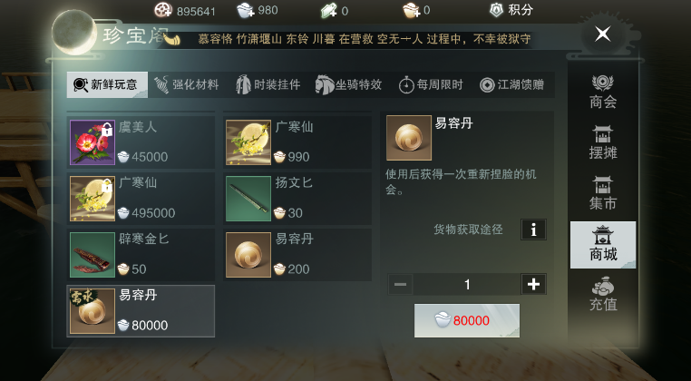 商城购买:消耗80000银两