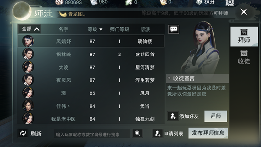 以上就是楚留香手游怎么拜师,楚留香手游怎么收徒,请大家继续关注。
