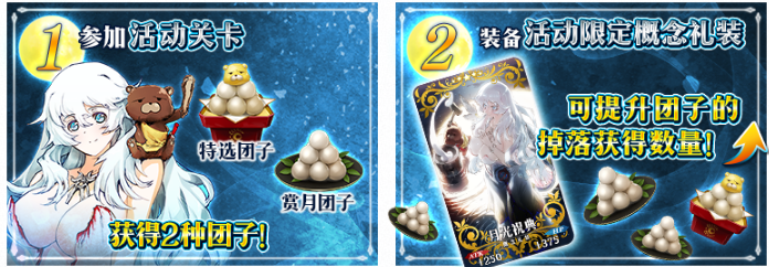 可大幅提升活动道具「特选团子」「赏月团子」的掉落获得数量。