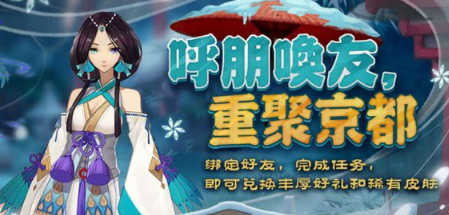 阴阳师呼朋唤友重聚京都活动只要有人绑定你,就能活动积分,有资源的玩家可以尝试下。比之前回归活动奖励更丰厚,完成难度更简单。