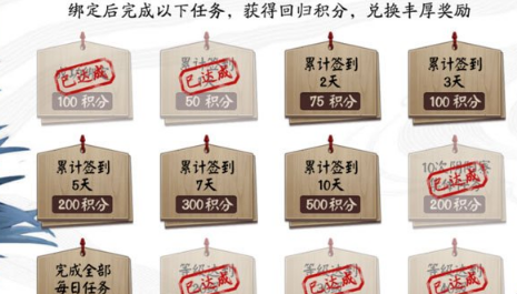 活动期间,回归阴阳师登录游戏,可以与活跃阴阳师形成绑定关系。绑定后,完成指定回归任务,可为双方获得不同数量的对应积分,双方均可使用对应积分兑换指定奖励。
