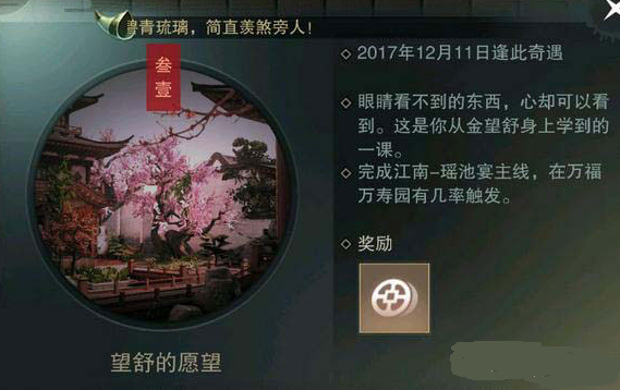 触发:完成江南-瑶池宴主线,在万福万寿园有几率触发。