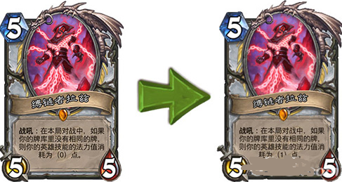 炉石传说缚链者拉兹进行削弱了,小伙伴们喜欢这个卡牌的现在要注意了,这次卡牌进行削弱,大家要关注一下调整了什么,想知道的小伙伴们,就一起来看看吧。