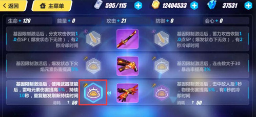 对于非被动类技能还需要基因限制激活。消耗同律圣弦可基因限制激活并获得相应技能加成。