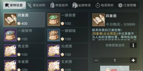 初期如果你刚进区,那就买四象图来挖宝,基本稳赚不赔,但是吧友都说2.1后概率低了不少珠子变多了,我试了下出了一次银票一对珠子一对红翡,感觉还可以,可能是挖的少,但是还是要挖,很简单,能赚钱,赚了钱,卖了,银子换铜币提升修为。这个是最大化的。