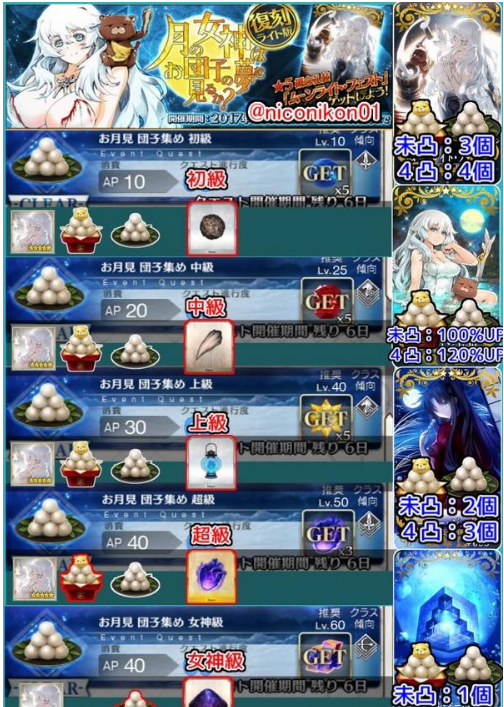 2.刷女神级掉普通团子,换完礼装再换其他素材