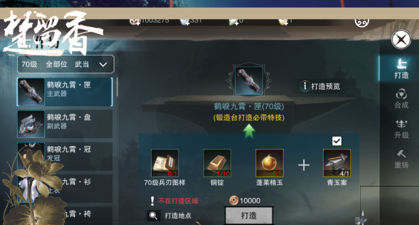 打造需要:图样,铜锭,精玉,青玉案(非必须)
