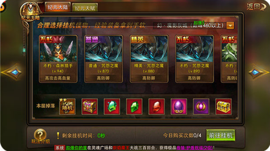 纪元大陆有着不错的挂机经验,我们选择不同的怪物挂机,经验是不一样的,我们可以选择学习纪元天赋,打对应的怪物,这样伤害是最高的,这个副本就是挂机拿经验不错的副本。副本挂机是有时间的,我们挂机时间不足会自动扣除挂机道具。