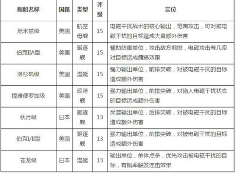 最佳阵容搭配:尼米兹级、伯克2A型、洛杉矶级、提康德罗加级、秋月级、伯克1/2型、苍龙级;该阵容的舰船定位详情如下: