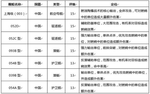 最佳阵容搭配:上海级(003)、052D、052C型、093B型、054B型、039B型、054A型;该阵容的舰船定位详情如下: