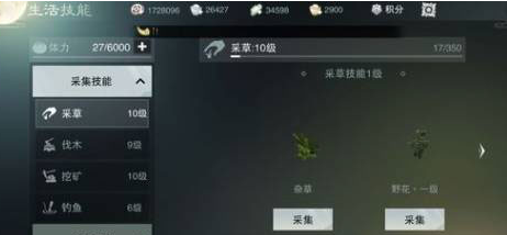 建议先学采草和伐木,那样可以一边升级技能一边刷生活装备等级,注意杂草和枯木很重要!!见到就拿!白天我发几个特别好刷的地点。