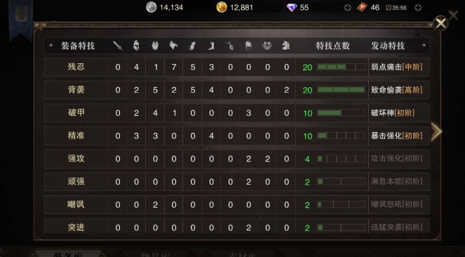 大家可以看到我这一套配装的技能点是非常舒服的,主要输出技能完美激活,而负面技能都没有生效,这就是3+2配装的优势。很多暴击双刀肯定都做了之前的主流铠骨套,但是随着铠骨套的升级,弊端也逐渐显露。暴击双刀作为一个灵活输出,其伤害是建立在不断走位黏BOSS叠残刃上的,所以铠骨加的嘲讽和减的鱼跃都非常致命。很早就有玩家提出搭一件加鱼跃的奇美拉,这是一个很棒的思路,但并不是最优的,因为奇美拉并不是输出套装,和铠骨魔相性不好,所以最优的搭配方法是找到和铠骨魔相性好的输出套装进行3+2的搭配。这个思路对于很多玩RPG游戏的玩家来说是很自然的,但如何搭配又是一个重点难点。而这里也是一个很大的分歧点,不同的玩家会有不同的配装方法,所以我在这里只提出我的个人见解,提供一种思路,也欢迎讨论。
