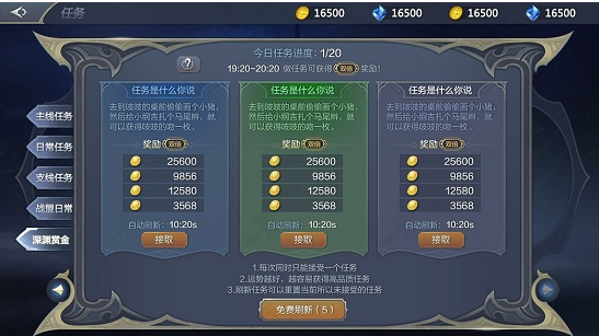 深渊赏金其实做起来非常简单,任务太多了,有交流NPC、有打boss、有打怪的任务、有通关什么副本的,所以很多的,但是做起来还是简单的,一天可以这里获得大量的金币。