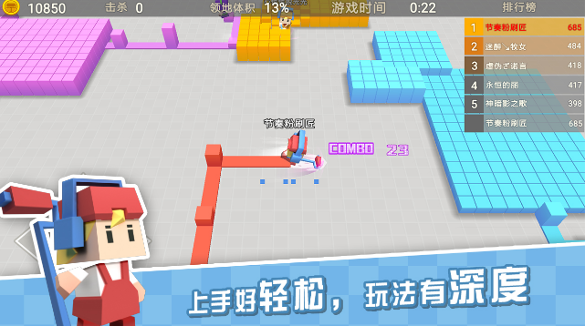 目前有三个速度的BGM,中速、快速和极速,分别对应的BPM(即拍/分钟)大概为120、140和160。不管选择哪个,在游戏中的最高移动速度是不变的,其区别在于:同样保持最高速的两个人,在1.5秒内,极速可以作出4次操作,而中速只有3次。这对圈地流来说区别不大,但是对于杀人流就很关键了。