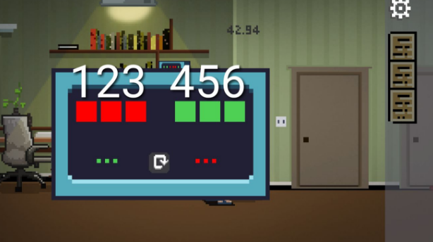 到厨房,点击第二个小机子,点击左下角蓝色区域来一个一个定住剪头,需要大致在紫色区域内,三个箭头对应出来数字666。