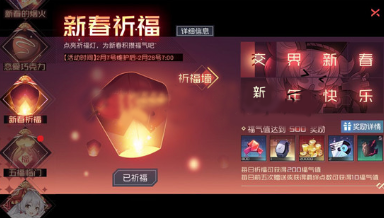 活动期间,每日登录可进行一次祈福,祈福可获得福帖,以及福气值奖励。每日前5次和好友或亲友互送友情点也可获得福气值奖励,当福气值达到一定数额后,可领取对应的祈福奖励!