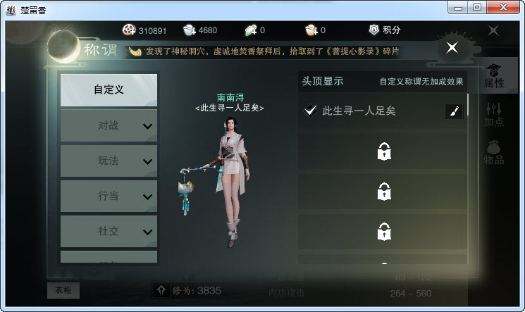 最后勾选的自定义称谓,你的人物头上就会显示自定义的称谓。