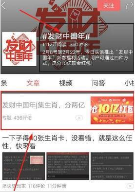 1、打开你们的今日头条更新到最新的版本!在上面的搜索栏中输入“发财中国年”,找到神秘活动页,也就是第一个!
