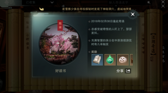 以上就是楚留香手游好读书奇遇在哪触发,好读书奇遇触发完成攻略,请大家继续关注。