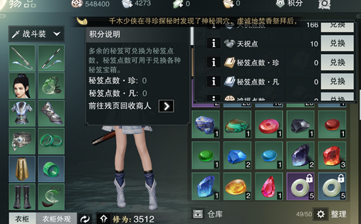 秘籍点数凡:可以兑换蓝色绿色白色随机秘籍残页或整本秘籍