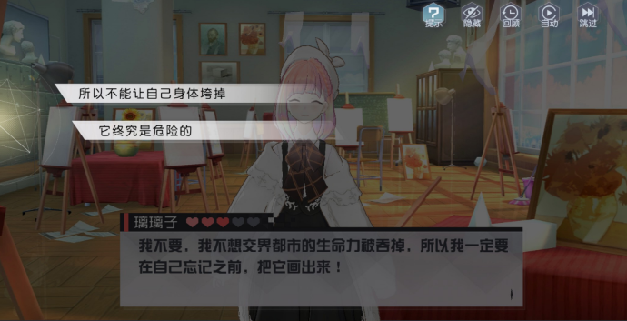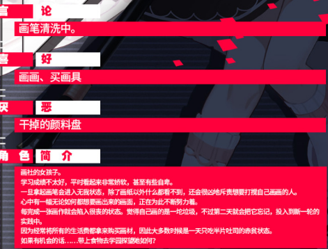 璃璃子是来自画社的女孩子,学习成绩不太好,平时看起来很娇软,甚至感到自卑,一旦拿起画笔会进入无我状态,心中有一副想画出来的画,正在努力着喔~~~