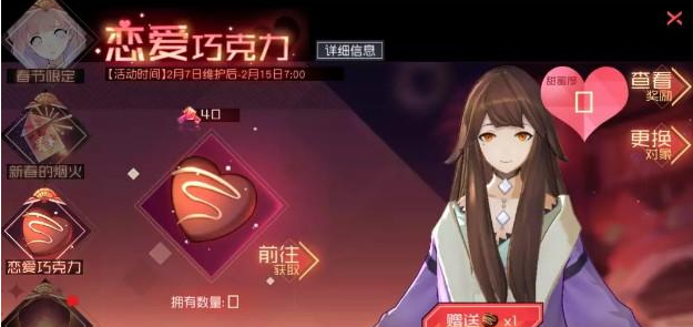 “甜蜜的巧克力”可以在活动页面赠送给各个神器使,每次赠送都会获得羁绊值奖励。神器使收到巧克力后,将会提升甜蜜度,当神器使甜蜜度增长到一定数量时,将会回赠给你一份礼物,最终可以获得神器使的“情书”。
