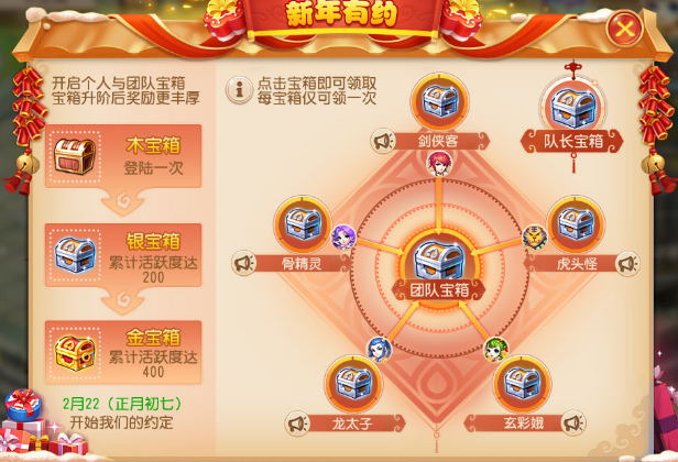 梦幻西游手游在2月22号要开启新年有约的活动,玩家按照要求完成任务可以拿到宝箱奖励哦,梦幻西游手游新年有约宝箱怎么领,西西小编为大家带来新年有约宝箱领取攻略。