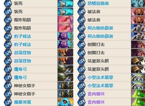 这套卡组在对局时会出现过很多不同的情况。比如在对抗盗贼时,你可能需要依靠小型法术翡翠获得胜利,因为通常来讲贼很难清理你的场面;而在对抗术士时,由于对方的解牌很多所以你最好能发挥亡语随从的作用。当然有时候你起手很顺,甚至在四费时就已经召唤出两只魔暴龙,那么你大可以忽略这些东西。不管怎样,猎人这套卡组还是需要多加练习的。