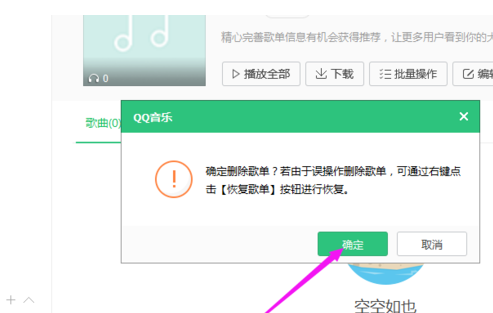 7.点击【确定】,这样就可以成功删除该歌单了。