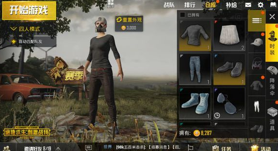 奖励:太阳镜、百褶超短裙、T恤、红色T恤、蓝色T恤、靴子、裤子、蓝色裤子。