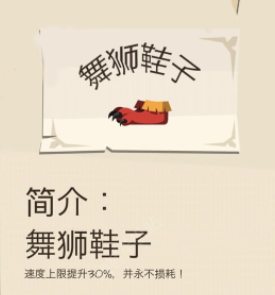 舞狮鞋子属性:速度上限提升30%,并永不耗损!