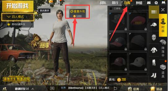 2、首先进入游戏首页,然后点击仓库功能,然后再角色旁边就会出现【重置外观】的功能,如下图所示;