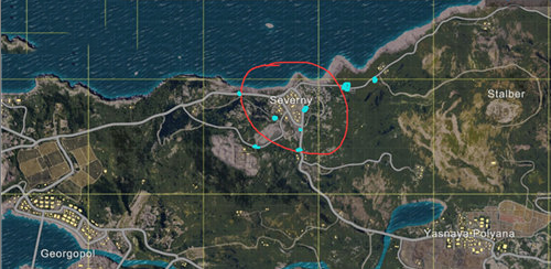 把S城作为落地点。航线一般经过S城。基本不存在只落一个或者一只队伍的情况。下地必清人。不存在和平共处的现象。同时还要提防靶场,正南方野区打野队伍的敌人。