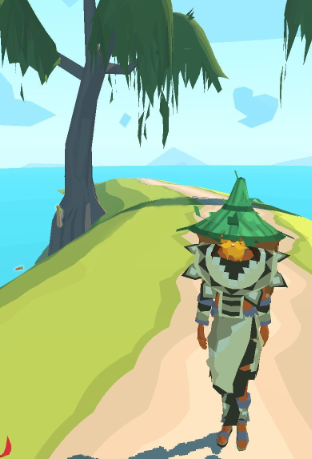 上图是胡萝卜的一个点,大家发现了没?胡萝卜的体积做的太小了,在大树左边的河上飘着。