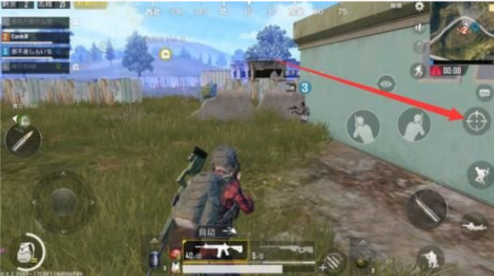 1、在游戏中玩家拥有瞄准镜之后装到武器上,然后点击右边的开镜图标,如下图所示;