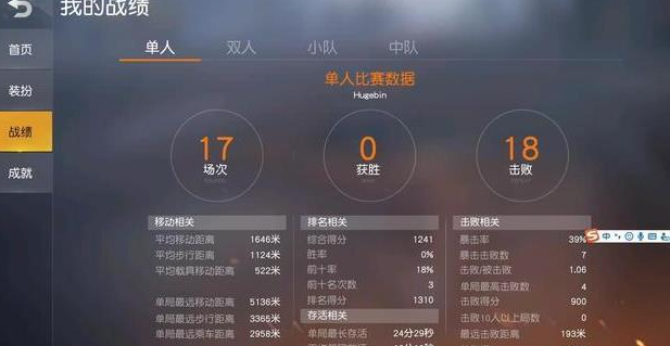 在PC版中,通过点击战绩可以查看自己的吃鸡记录,每一次比赛完毕都会有所更新。而这个段位分就隐藏在排名相关这一列里,段位分就隐藏在综合得分这一行中,每次比赛完毕都会有所变化。