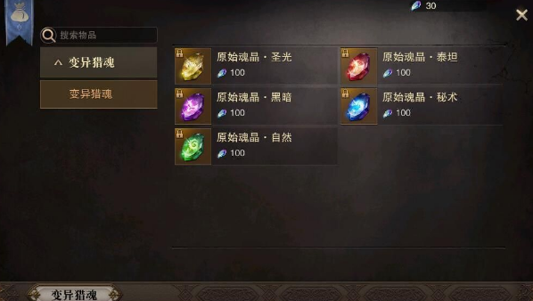 6.使用一定数量的命运晶石可在伊卡洛斯处兑换不同神系的原始魂晶,打开原始魂晶即可获得对应神系的随机一个变异猎魂。