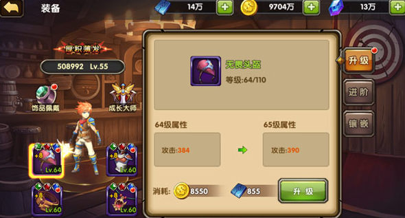 装备升级、进阶和镶嵌都可以提升装备的属性。