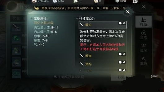 金色特技噬心在角色暴击时,会额外附加对方生命上线2%的真实伤害,对于注重暴击的暗香来说,更容易触发效果造成更多伤害。偷袭时角色在背后攻击时,伤害会额外提升30%,对有一定操作的暗香来说作用会很大。