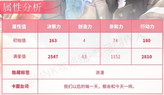 首页 → 安卓游戏资讯 → 安卓游戏攻略 → 恋与制作人只属于你顶配分析 只属于你属性分析