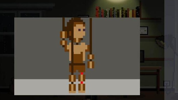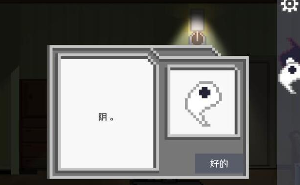返回书房,在电脑桌上的模子使用人偶娃娃,触发谜题。之前猫儿的两个动作就是答案,如下图:
