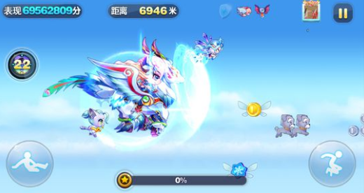 这位酷跑国的新宠可是自带强力技能的哦~概率将普通飞星变化为高分羽毛飞星,角色释放主动冲刺技能期间,收集羽毛可以生成抵御导弹的护盾!