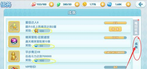 完成成就可以获得非常丰厚的奖励,这些奖励包括钻石、金币以及升星石等物品。