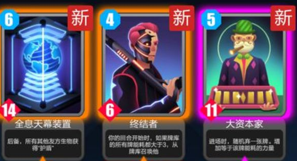 思路:整套牌的费用都大于3所以开场一定能召唤终结者,利用商业间谍使手中的炸弹人提前进场点数压制